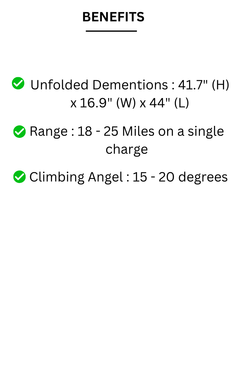 PORTABLE SCOOTER battery systems were built to keep exploring the world-, delivering up to 18 - 25 MILES of range depending selection of the 48V 12.5 Ah battery pack and 800W brushless hub motor. The powerful motor and off-road tires combination are the most efficient for achieving the longest range.