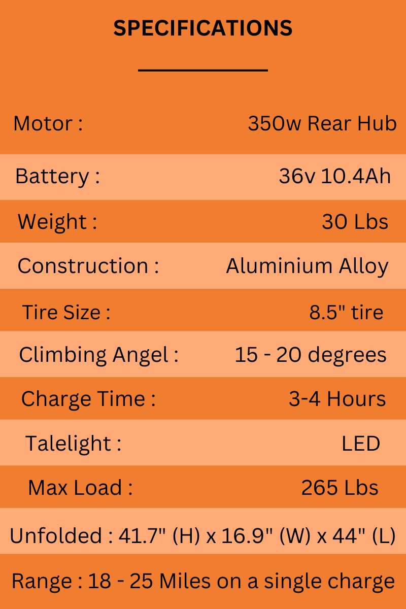The 350W motor provides efficient and reliable power for smooth acceleration and a comfortable riding experience.