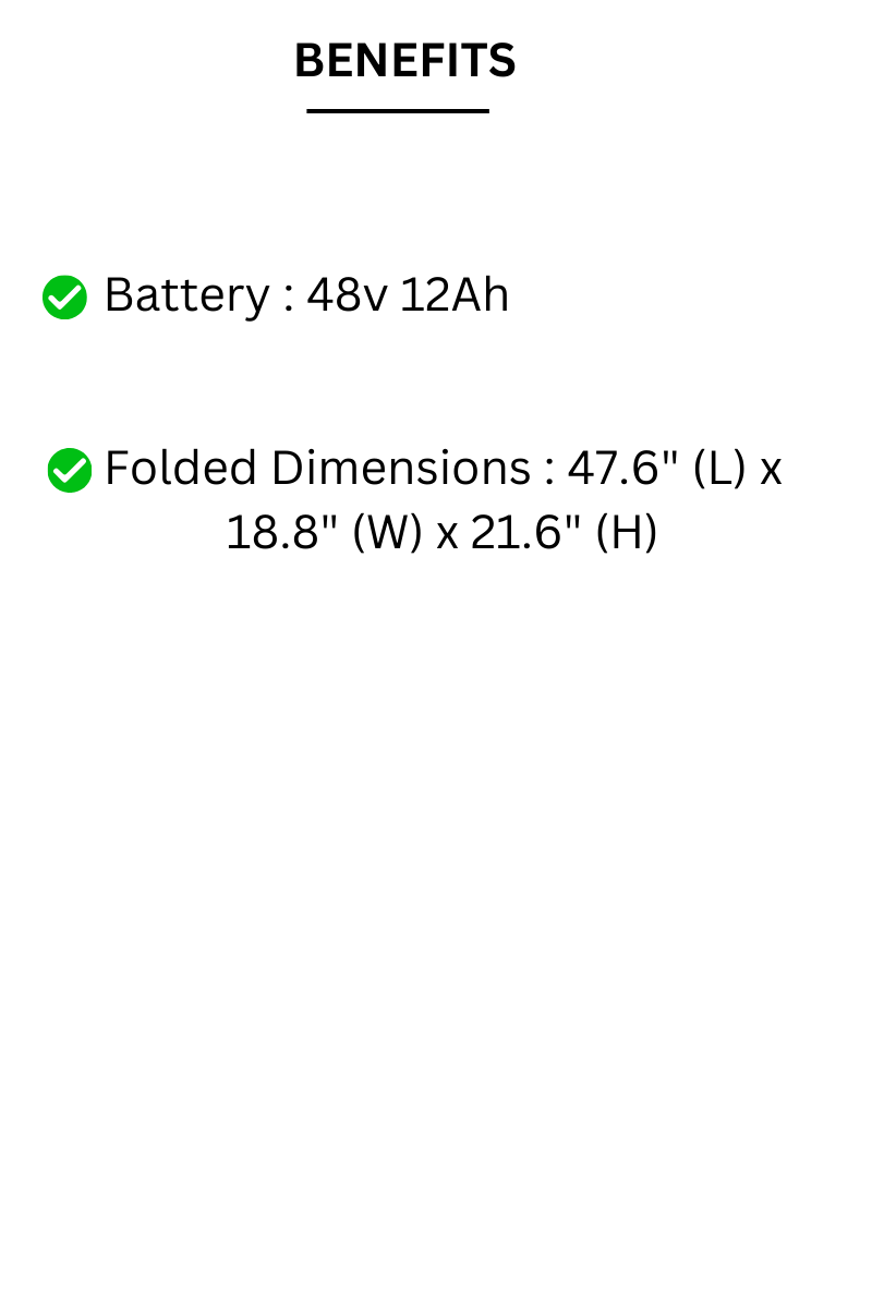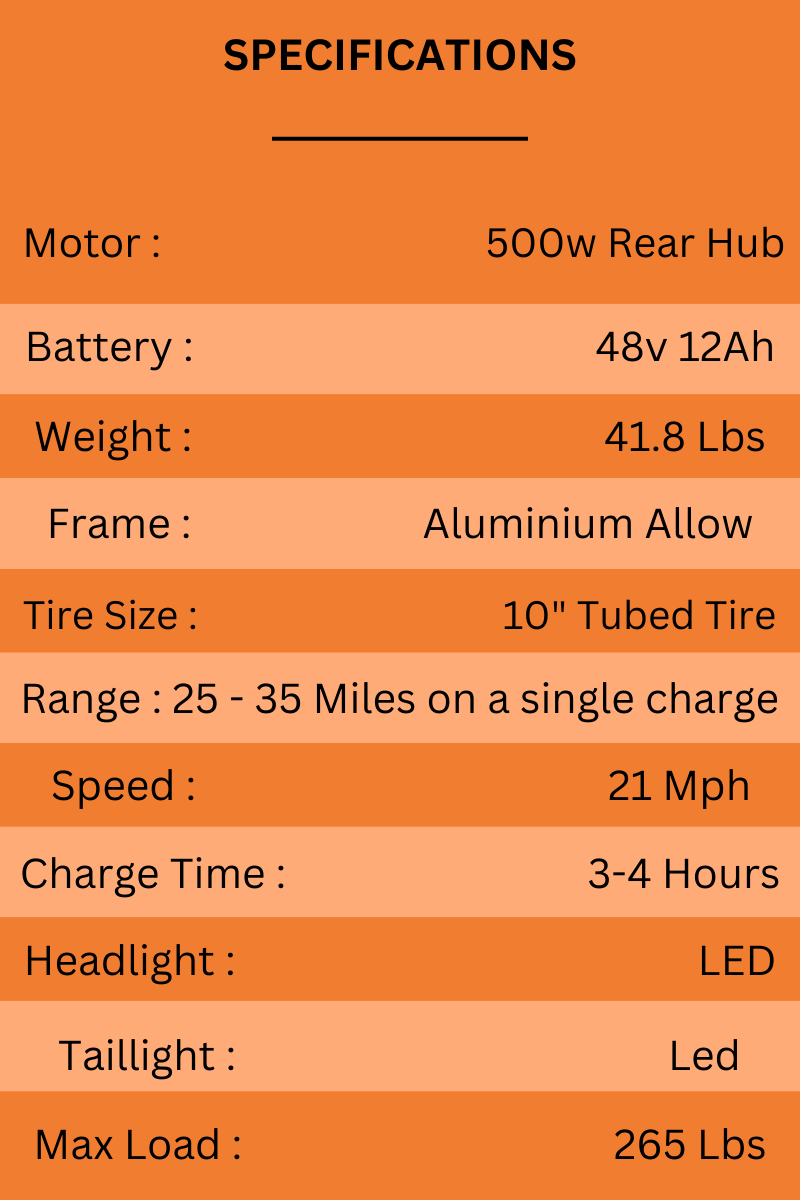 Experience efficient and dynamic rides with a powerful 500-watt motor, offering ample speed and torque for various riding scenarios.
