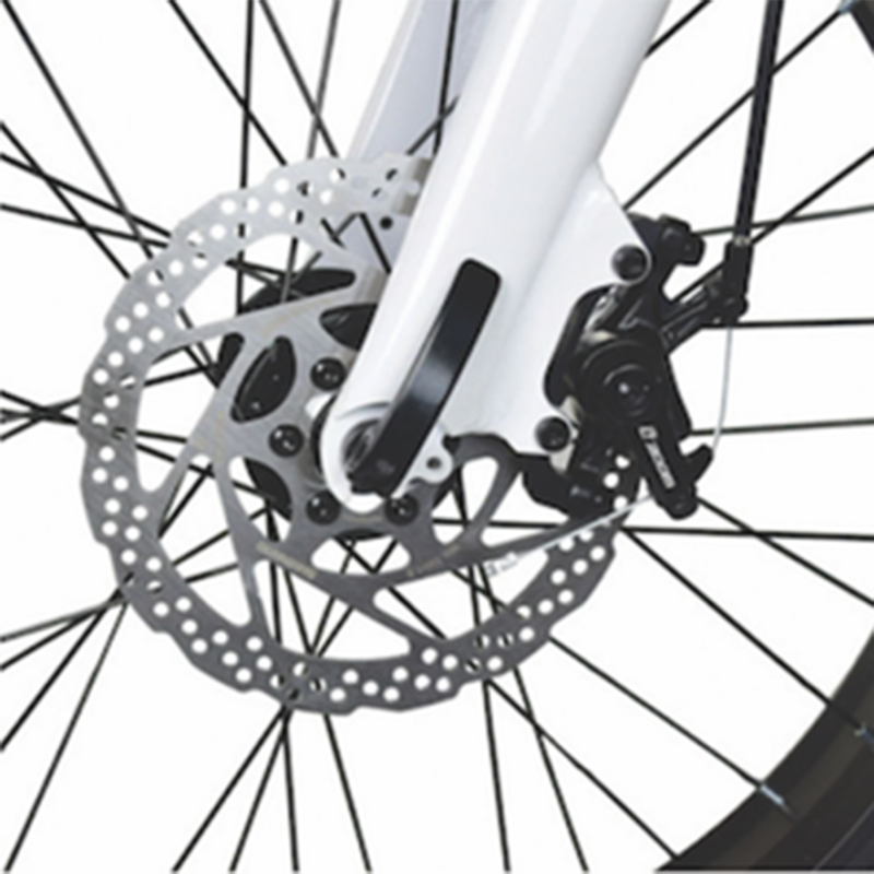 Prioritize safety with the responsive front and rear disc brakes, providing reliable stopping power and control for a secure riding experience